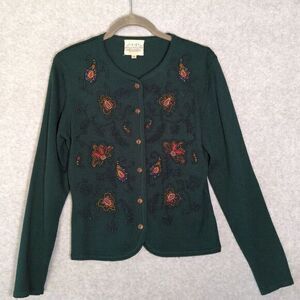 Susan Bristol Vintage Hand embroidered Green Floral Paisley Cardigan Small Retro