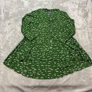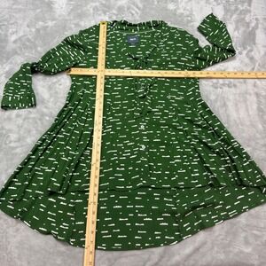 Eye-catching dress in a vibrant green hue featuring an all-over white abstract print. This stylish piece boasts a charming tie neck detail that adds a touch of sophistication, while the long sleeves and tiered skirt create a flattering silhouette. Perfect for a daytime event, brunch with friends, or a casual office setting.