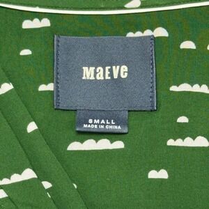 Maeve Anthropologie Green White Cloud Print Tie Neck Blouse Size Small **Read