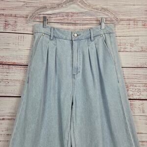 Paige Womens Bella Baggy Jeans in Beaumont Light Wash 28 Pleats Pockets Minimal