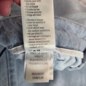 Elevate your denim collection with these stylish Paige Women's Pleated Bella Baggy Jeans in a Beaumont Light Wash. Perfect for a relaxed yet chic look. These jeans offer a comfortable fit and a touch of sophistication with their unique pleated design.