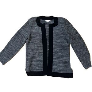 Gorgeous Gray Misook Cardigan With Hook and Eye Closures and Black Trim Large