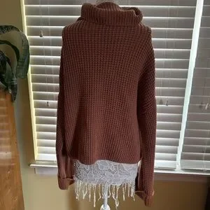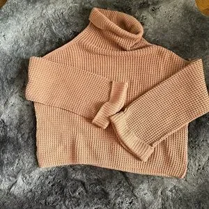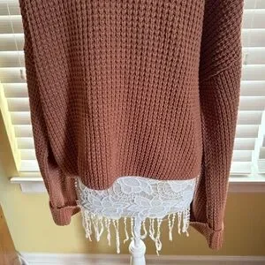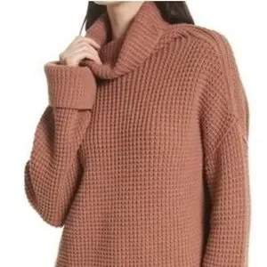 Free People Pullover Waffle knit sweater Oversized Orange Brown Distressed L