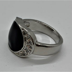 Silver Ring with Black Onyx Stone Size 8 NEW