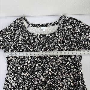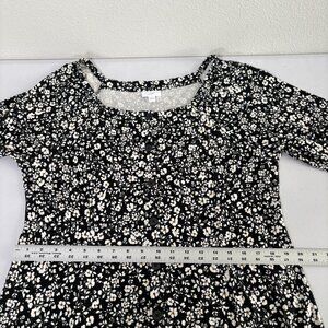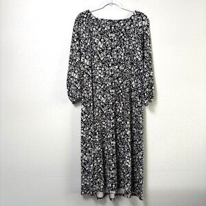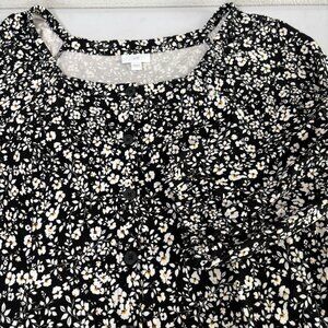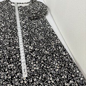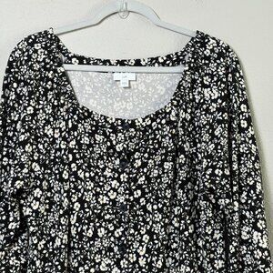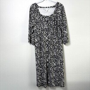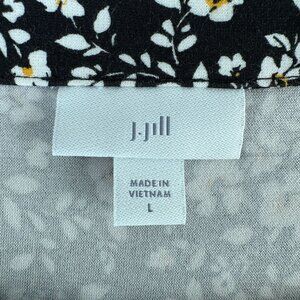 J Jill Midi Dress Size L Black White Floral Button Front 3/4 Sleeve Cottage