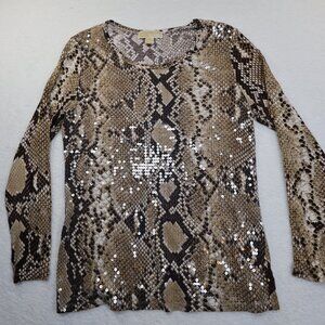Michael Kors Stretch Snake Print Sequin Front Figure Flattering Large