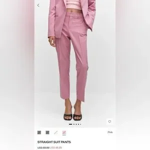 Chic pink cropped pants and blazer from Mango. Perfect for a stylish look.