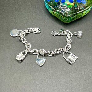 Sterling Silver 925 Chain bracelet with Lock Charms #1226