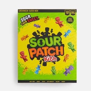 The collection's centerpiece is a limited edition, co-branded two-pound box containing a special Halloween blend of Grape and Orange-flavored SOUR PATCH KIDS candy. The Kith Treats for SOUR PATCH KIDS® two-pound box size is typically reserved for special collaborations and cannot be found anywhere else.