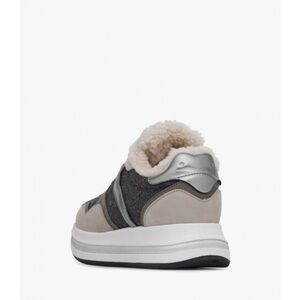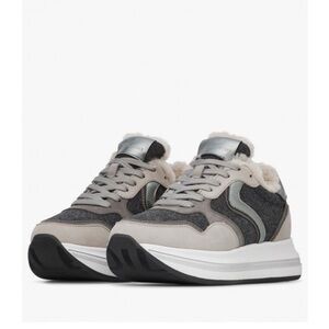NWT VOILE BLANCHE MELANY FUR. Leather And Fabric Sneakers in Grey-Charcoal Grey