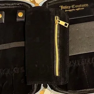 Soft blue jewelry organizer. Features Juicy Couture logo. Zipper closure.