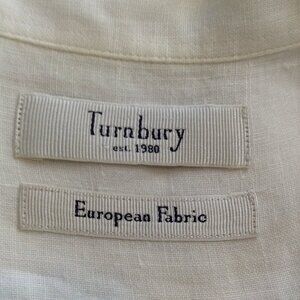 Turnbury Men's "L" Linen, Short Sleeve, Collegiate, Corporate, Ivy League Lunch. Off White, Quiet Lux, Button Collar, Very Gently Pre-loved, doesn't look like it was ever worn. Shoulders: 20", Pit-Pit: 25", Length: 29"