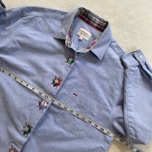 Add a touch of vintage preppy charm with this Susan Bristol women’s button-down cotton shirt, dating from the late 1980s to early 1990s. Made in Hong Kong, this piece blends timeless tailoring with playful details.