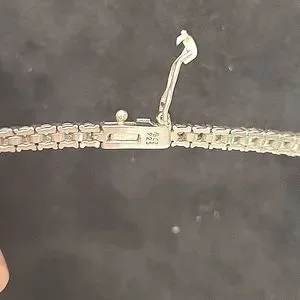 This elegant silver necklace adds a touch of sophistication to any outfit. Perfect for any occasion.