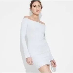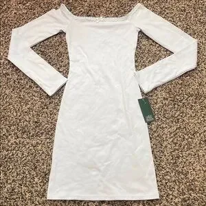 Wild Fable Off-Shoulder Blue Lace Bow Trim Long Sleeve Mini Dress Var Sizes NWT