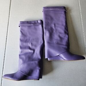 Liliana Lavender Purple Mutto-1 Padlock Detail Wedge Knee High Boot