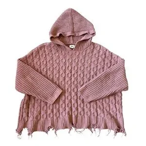 BKE dusty rose/mauve distressed hem hooded oversized sweater size Medium