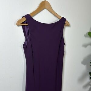 Evan Picone womens purple dress size 10P, sleeveless eggplant sheath dress, elegant plum midi cocktail dress, aubergine waterfall back formal dress, deep violet A-line holiday party wedding guest dress