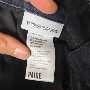 Discover your new favorite denim with these Paige Verdugo Ultra Skinny jeans. The deep, dark wash offers a sleek and sophisticated look, perfect for elongating your silhouette. Designed for a flawless fit, these ultra-skinny jeans hug your curves for a flattering and comfortable feel. Elevate your everyday style or dress them up for a night out. Ideal for a chic brunch date or a stylish evening event.