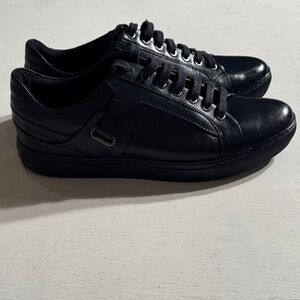 Elevate your look with these dark blue leather sneakers. Versace Collection offers style and comfort.