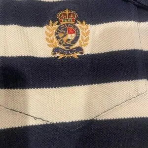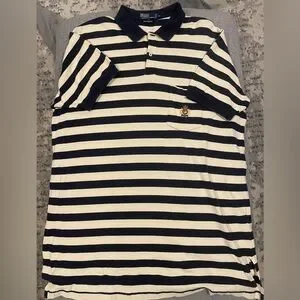 Polo Ralph Lauren Navy and Cream Striped The Big Shirt Polo Size XL With Crest