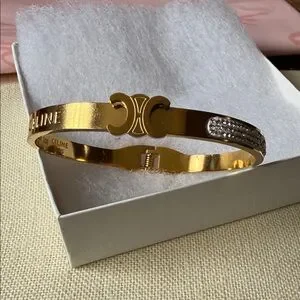 Fashion Bangle Bracelet Gold Bracelet with Silver Crystal Detail