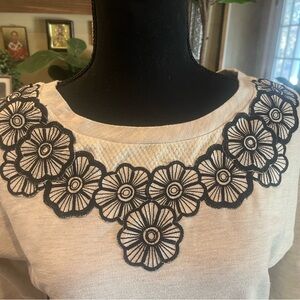 This stylish sweatshirt features intricate black floral embroidery around the neckline, offering a chic and elegant look. Perfect for casual outings or cozy days at home.