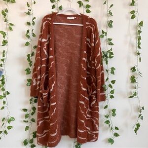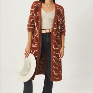Greylin Anthropologie Heddie Eyelash cardigan. Burnt orange and white. Has pockets. GUC.