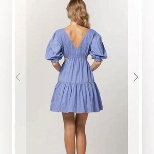 Gorgeous LUSANA dress in a dreamy blue hue. Features a smocked bodice, puff sleeves, subtle cutout details, and a flowy tiered skirt. Made from 100% cotton, lightweight, and perfect for warm weather.