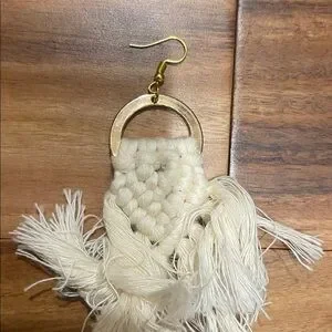 Elegant cream macrame hoop earrings with a bohemian flair. Perfect for adding a touch of style to any outfit. Offers are welcome, no returns allowed/accepted