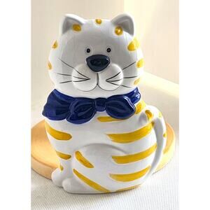 PAPER TOWEL HOLDER/DISPENSER-ALCO-Countertop-White Cat-Yellow Stripes-Ceramic