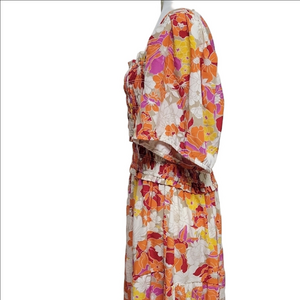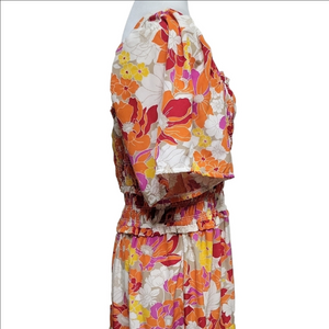 Orange Puff Sleeve Maxi Sundress for Wedding Guests XL Beach Summer Winetasting