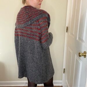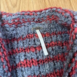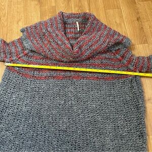 Free People Wool, Linen, Mohair Blend Gray and Red Cowl Neck Chunky Sweater