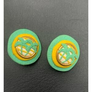 Vintage Teal Green & Yellow Palm Trees & Sunshine Clip On Earrings Unique