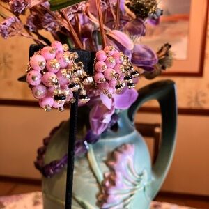 Stunning pink bead capped earrings with moving, hanging pieces. They are stunning and unique. They are 1 12” around the dome in diameter.