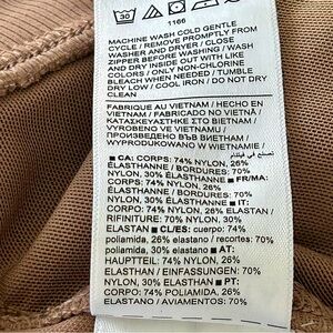 - Trims: 70% nylon, 30% spandex/elastane.
