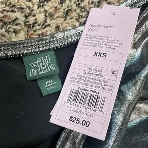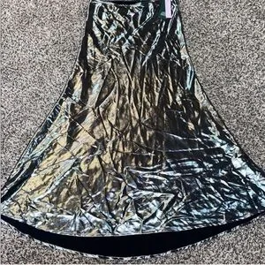 🆕Wild Fable Metallic Shimmer Liquid Party Silver Maxi Pull On Stretch Skirt NWT