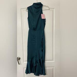 Chic asymmetrical satin maxi with a sleeveless design. Perfect for stylish outings.