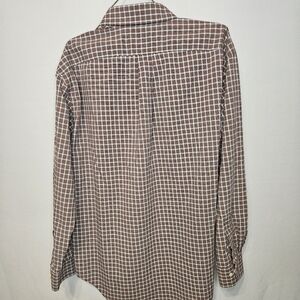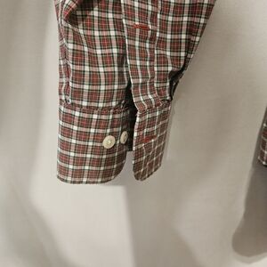 This Ralph Lauren shirt is a classic addition to any wardrobe. Made of 100% cotton, it features a plaid pattern in multiple colors. The shirt has a button-down collar and closure, long sleeves, and is a regular size for men. Tag says size 17/34/35
