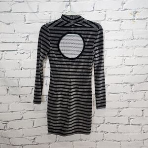 This dress from T Alxander Wang is made from a soft Velour fabric. It has long sleeves and a mock neck. It has a circle open back. It is in good used condition.