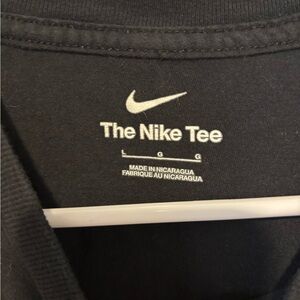 Classic black tee with bold white and gray iconic Nike logo. Soft and comfortable for everyday wear, unisex kid sizing. 100% cotton, 23” long, 17” across chest, good condition, smoke-free home. Fast shipping.