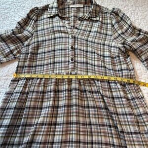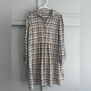 Cute oversized plaid dress from LOFT in petite large. Multicolor plaid including beige, black, light brown, maroony purple, and green. Very comfortable, worn only 1-2 times.