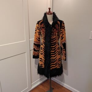 RARE Vivienne Tam Vintage Size 0 Tibetan Tiger Faux Fur Trim Tapestry Coat Wow!