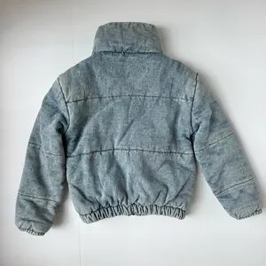 Kidpik Girls Blue Denim Puffer Jacket Zip-Up Size 7-8