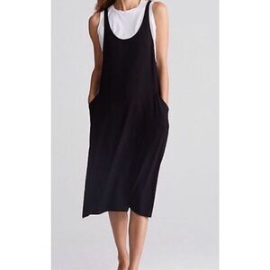 Eileen Fisher A-line midi jersey Jumper Dress sz L Lagenlook pockets layered