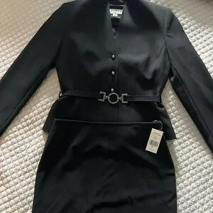 Discover sophistication with this elegant black women's suit by Tahari. Perfect for professional settings, this suit offers a sleek and polished look. The classic black color ensures versatility and timeless style.