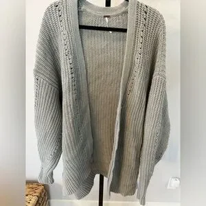 Very oversized free people sweater size medium. Lightweight gray knit slouchy cardigan sweater. Could honestly fit up to XL