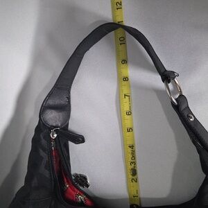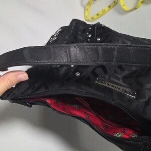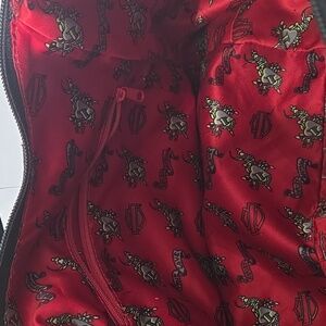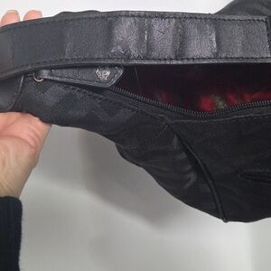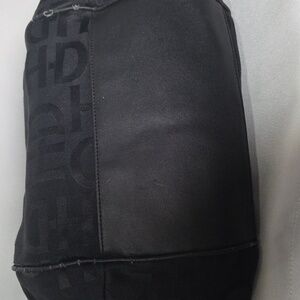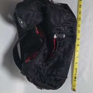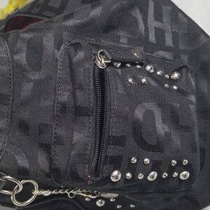 H-D monogrammed hobo bag with red satin lining. Tons of pockets, super cool bag! There is some peeling on the leather (see photos).
