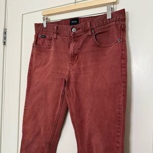 RVCA Spanky Denim Jeans Mens Sz 33 Red Slim Straight Stretch Outdoor Comfort