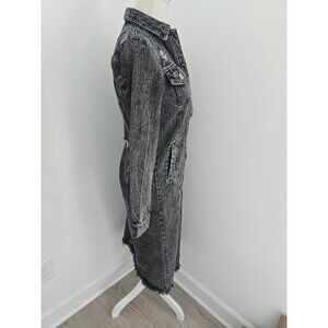 Disstressed Denim Midi Dress XS Long Sleeves Button Down Cotton Black Acid Wash